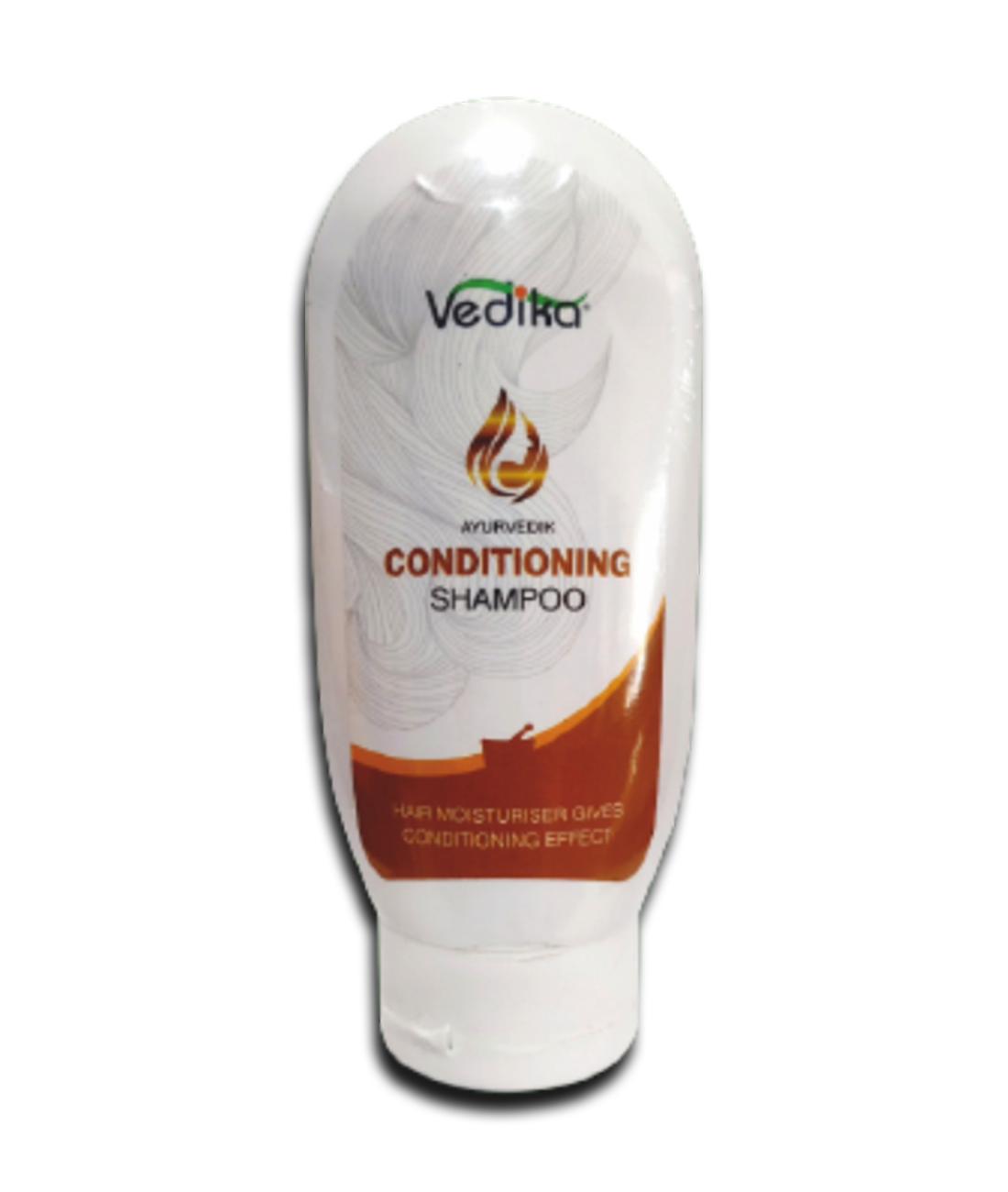 It contains Aloe Vera gel, Brahmi and Mehendi. It is recommended for curly, dyed hair and for dry skin. After washing hair with this shampoo hair appears to be smooth and silky. There is no need to apply extra conditioner after using Vedika Conditioning shampoo.